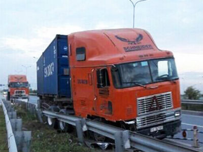 Chiếc container chạy tốc độ cao bất ngờ đâm vào dải phân cách, lao vào làn đường xe máy sẽ được chạy vài ngày tới - đoạn cao tốc đô thị TP HCM - Long Thành - Dầu Giây.