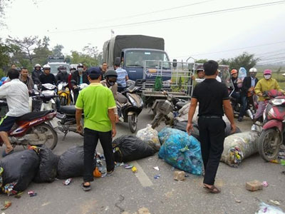 Mâu thuẫn vì đốt rác, dân chặn quốc lộ hơn 3 giờ