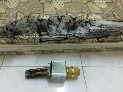 Xôn xao hình ảnh chiếc micro hát karaoke bất ngờ phát nổ khi đang sạc