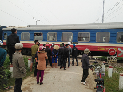 Cú va chạm với tàu hỏa khiến xe máy nát đầu, văng xa gần 50m, người điều khiển xe máy nguy kịch.
