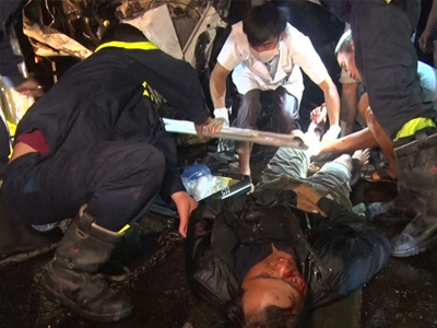 Sau cú va chạm, tài xế Hiển mắc kẹt trong cabin. Khi chưa thoát ra ngoài được thì chiếc xe của anh Hiển tiếp tục bị một chiếc xe khác đâm trực diện khiến nạn nhân bị mắc kẹt nặng hơn. Lực lượng cứu hộ phải sử dụng các thiết bị chuyên dụng, cắt các phần chèn ép để giải cứu nạn nhân.