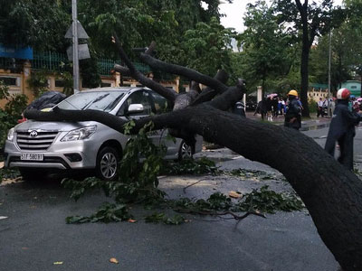 Sài Gòn mưa ngày thứ 3 liên tiếp, cây đổ đè ô tô