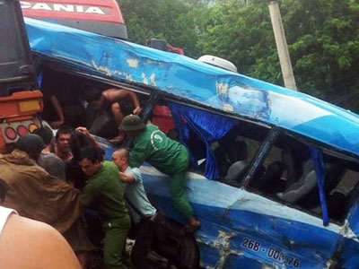 Sau va chạm với xe container, ôtô khách chở 12 người lao xuống vực bên quốc lộ 6 (Hòa Bình). Vụ tai nạn khiến một người chết, nhiều người trọng thương.