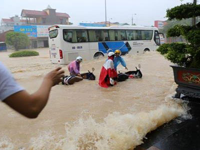 Mưa lớn khắp các tỉnh đồng bằng Bắc Bộ với lượng trên 150mm đã khiến nhiều thành phố bị ngập sâu, có nơi ngang thắt lưng.