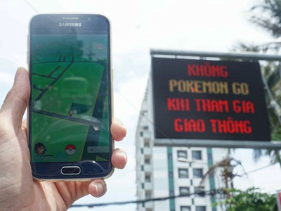 Bảng điện tử ở TP HCM đồng loạt cảnh báo Pokemon Go
