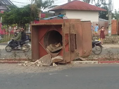 Khối sắt khổng lồ bất ngờ rơi, người đi đường một phen hú vía