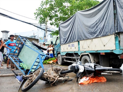 Ôtô tải húc văng nhiều xe máy ở vùng ven Sài Gòn