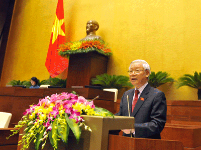 Tổng bí thư Nguyễn Phú Trọng đề nghị các đại biểu Quốc hội dân chủ thảo luận, sáng suốt lựa chọn bầu và phê chuẩn các chức danh lãnh đạo cấp cao Nhà nước.