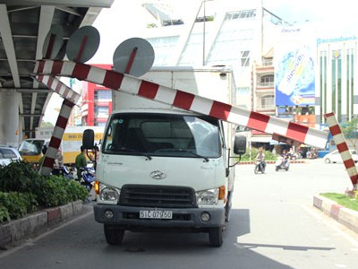 Thanh giới hạn chiều cao dưới gầm cầu vượt Lăng Cha Cả (TP HCM) bị húc đổ khiến nhánh đường bị phong tỏa, cửa ngõ Tân Sơn Nhất kẹt xe kéo dài hơn 2 tiếng.