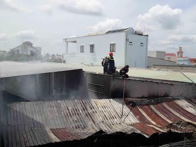 Cảnh sát chữa cháy "chật vật" dập lửa dữ dội trong hẻm nhỏ