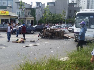 Xe ba gác chạy ngược chiều tông trúng ôtô khách