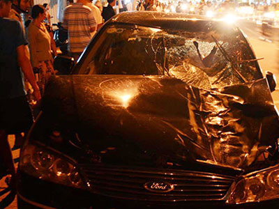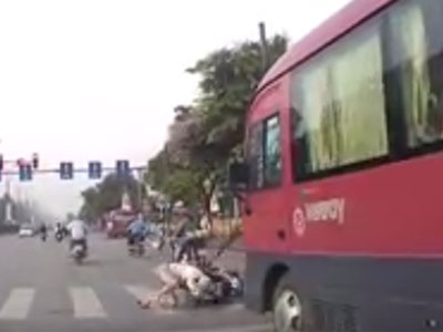 Chiều ngày 8/6, khi đang đứng dừng đèn đỏ tại ngã ba đường Giải Phóng, quận Hoàng Mai (Hà Nội), một người phụ nữ điều khiển xe gắn máy bất ngờ bị một chiếc xe khách đâm trực tiếp từ phía sau khiến nạn nhân hất văng khỏi xe.