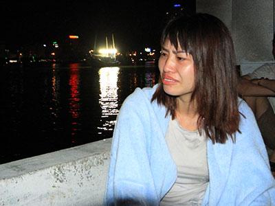 Trời lặng gió, vậy mà con tàu bất ngờ lật như cái bát úp khiến vợ chồng chị Xuân và hai con nhỏ đập mạnh xuống mặt sông, văng mỗi người một nơi. Chị Xuân được cứu trong khi hai con mất tích.