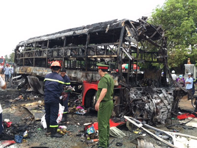 Nhiều thi thể nạn nhân của vụ tai nạn kinh hoàng ở Bình Thuận sáng 22.5 bị cháy đen, không còn nguyên vẹn.