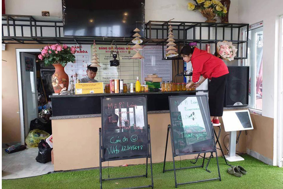 Sáng nay, tấm biển “Panorama Mã Pì Lèng tạm dừng hoạt động” đã được trưng ở ngay quay lễ tân. Mọi hoạt động kinh doanh của trạm dừng chân này đã được dừng lại. Khách du lịch vẫn có thể vào chụp ảnh hẻm Tu Sản tại địa điểm này.
