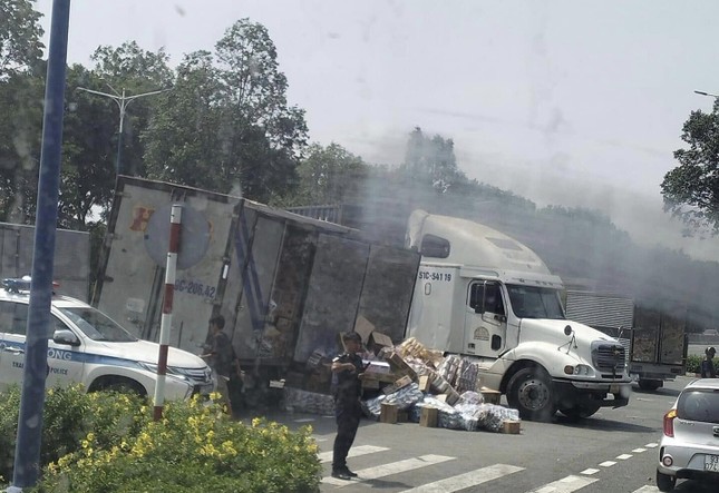 Theo thông tin ban đầu, khoảng 10h30 trưa 13/4, chiếc xe container mang biển số TPHCM di chuyển trên đường Mỹ Phước Tân Vạn.