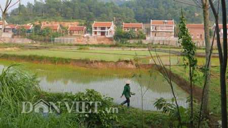 | Vị trí xây dựng của Điền Viên Thôn nằm dưới chân núi Ba Vì, sát ngay diện tích đất nông nghiệp của người dân xã Yên Bài. Ảnh: Đàm Duy |
