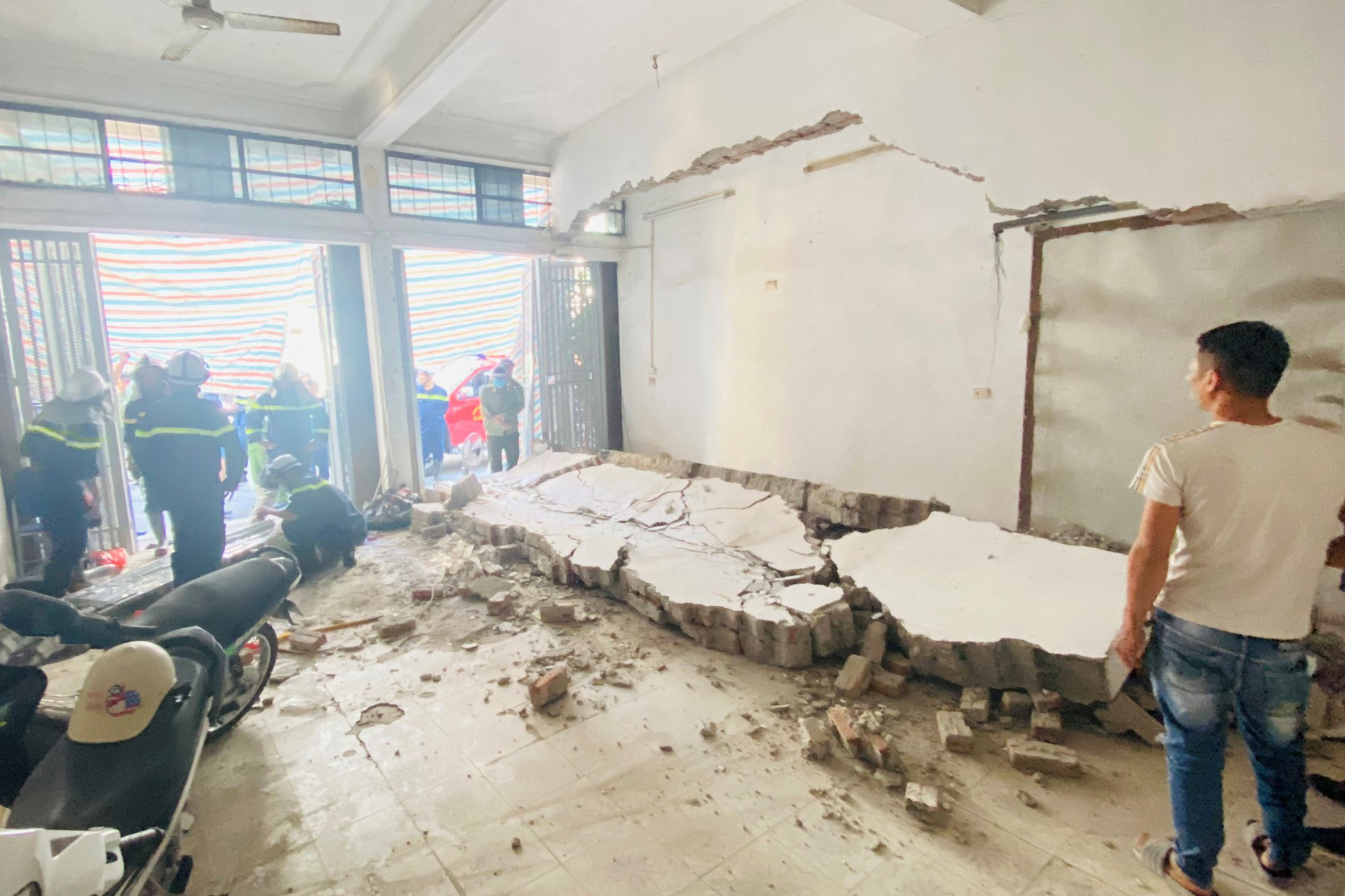 Tại hiện trường, nạn nhân được xác định là ông D.V.Đ (SN 1971, trú tại Hàm Yên, Tuyên Quang). Ông D.V.Đ là công nhân, người trực tiếp phá dỡ tường nhà.