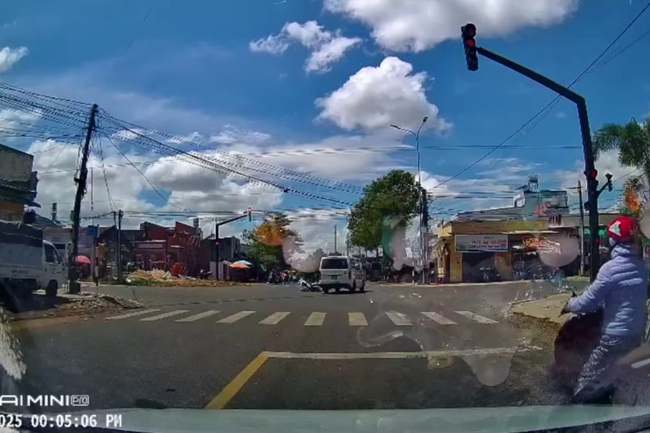 Theo đó, xe cứu thương chạy trên đường Đào Duy Từ, hướng UBND phường Lộc Phát đi trung tâm TP Bảo Lộc. Đến nút giao trên, khi các phương tiện đang dừng đèn đỏ, xe cứu thương vượt lên, băng qua ngã tư, không bật đèn và còi ưu tiên.