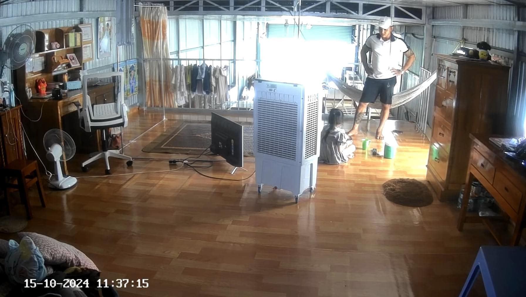 Theo dõi hình ảnh trong đoạn clip cho thấy, một bé gái đang ngồi dưới sàn nhà thì người đàn ông được cho là bố đang nằm trên võng bất ngờ vùng dậy, dùng chân đạp vào đầu bé gái khiến cô bé ngã nhào ra sàn nhà. Dù bé gái đã bị đau, không thể ngồi dậy nhưng người đàn ông vẫn tiếp tục dùng chân đạp vào đầu.