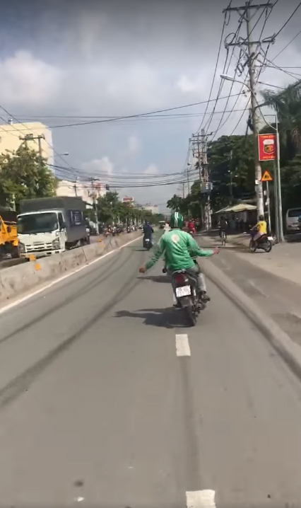 Trước đó, đoạn clip khác ghi lại phong cách tham gia giao thông kỳ quái của tài xế xe ôm công nghệ đã từng khiến người xem lắc đầu ngao ngán. Hình ảnh cắt từ clip