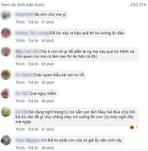 Trước hình ảnh nguy hiểm này, nhiều người dùng mạng đã xôn xao bàn luận. Phần lớn tỏ ra bức xúc trước thái độ và ý thức trông con của người phụ nữ này. Số khác thì lo ngại nếu chẳng may sự cố gì xảy đến với 2 đứa trẻ thì người lớn sẽ ân hận suốt đời.