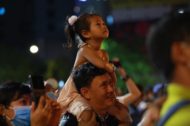 Người dân bắt đầu tập trung đông đúc tại các màn hình lớn ở Nguyễn Huệ để thưởng thức các chương trình cả nhạc, hài, ảo thuật.