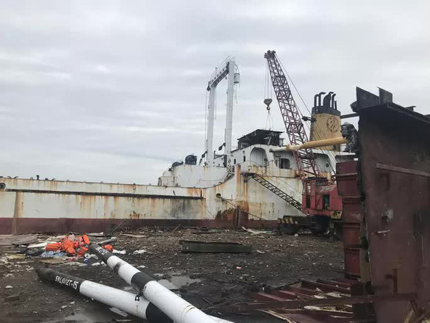 Tại thời điểm kiểm tra, không còn thuyền viên nào trên tàu. Toàn bộ 3 tầng ca bin cùng nhiều khu vực trên tàu biển đã được cắt hạ. Ở khu vực phía dưới, những đống sắt vụn cùng nhiều thiết bị, vật tư của tàu được tập kết, các tốp thợ hàn, xe cẩu tự hành đang hoạt động .