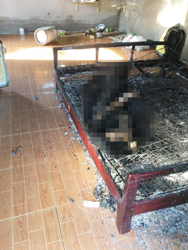 Tại hiện trường, thi thể ông B. nằm sấp trên tấm đệm lò xo đã bị cháy hoàn toàn. Vì căn nhà nằm ở giữa vườn cây hoang vắng nên khi sự việc xảy ra đã không ai biết.