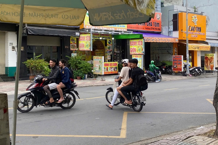 Trong khi đó, từ 23 giờ ngày 11-6 đến 1 giờ ngày 12-6, tại đường Hồ Hảo Hớn (phường Cô Giang, quận 1) và Tôn Thất Hiệp (quận 11), tình trạng người điều khiển xe máy không đội mũ bảo hiểm diễn ra khá phổ biến. Phần lớn các trường hợp vi phạm là thanh niên trẻ, đi theo nhóm, phóng nhanh, nẹt pô gây mất trật tự.