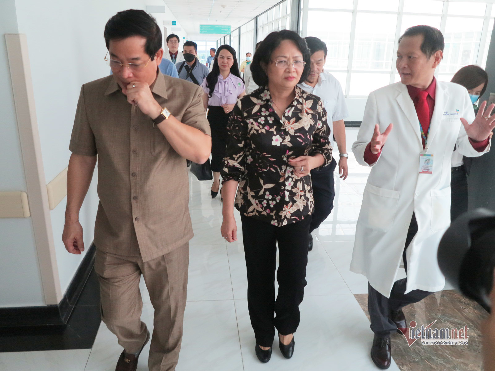 Sau khi đến phòng Hồi sức thăm 2 bé Trúc Nhi - Diệu Nhi, Phó Chủ tịch nước cùng phái đoàn đã có buổi gặp mặt, chia sẻ tại phòng truyền thông.