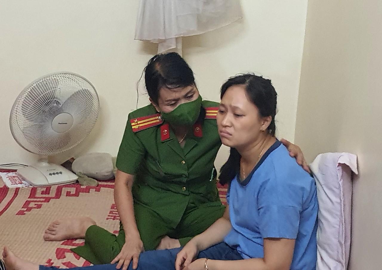 Trong căn buồng nhỏ, chị Hiền (vợ Trung tá Quân) dựa vào vai nữ cán bộ chiến sỹ công an quận Đống Đa đến nhà Trung tá Quân từ cuối giờ chiều. Gương mặt thất thần, chị Hiền không còn nước mắt để khóc chồng…
