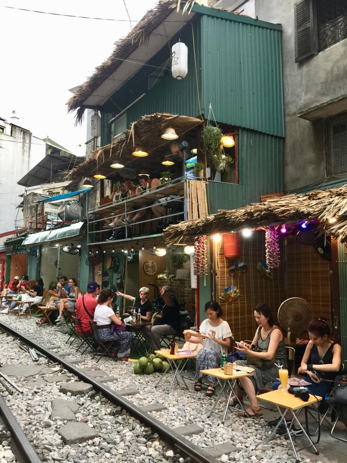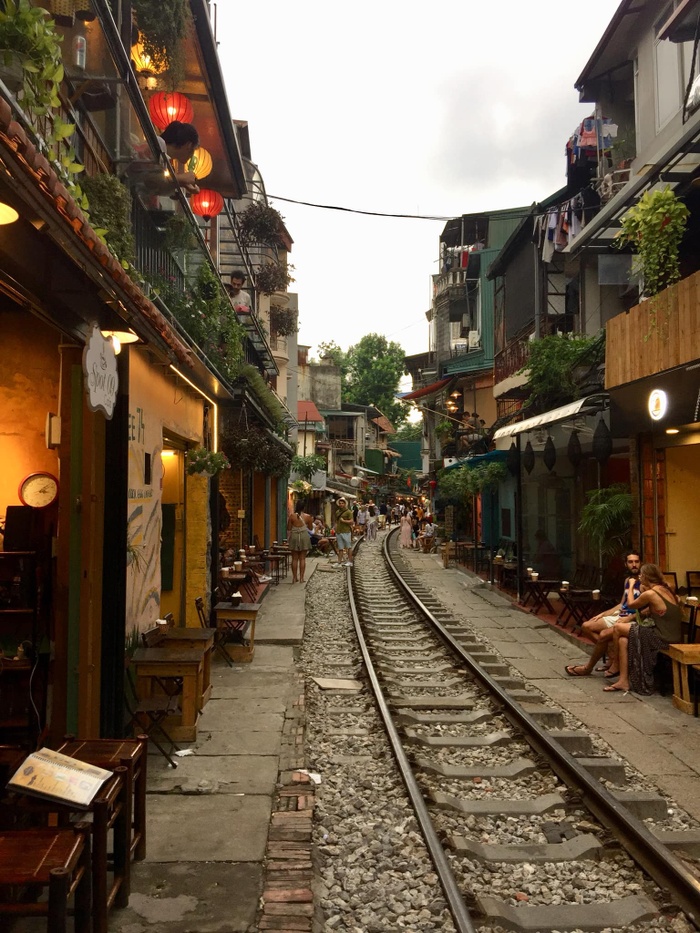 Phố đường tàu là đoạn đường dài 2 km, nối giữa Lê Duẩn, Trần Phú, Cửa Đông và Phùng Hưng. Đây từng là địa điểm thu hút đông người nước ngoài bởi sự thú vị đặc biệt. Đến đây, bạn sẽ được ngồi tại những quán cà phê độc đáo, nơi có thể ngắm trọn vẹn những cảnh đường tàu đi qua.