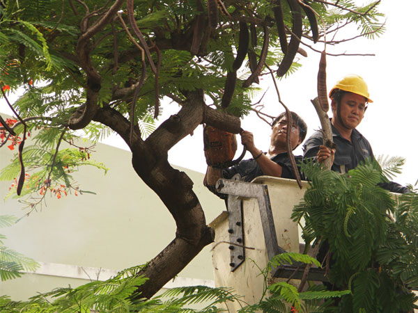 Trước đó ngày 26/5, một cây phượng lớn tại trường Bạch Đằng, quận 1, TP.HCM bị đổ trúng nhiều em học sinh, trong đó có một em tử vong, nhiều em bị thương nặng. Sau đó nhiều trường đã chặt hạ các cây lớn trong trường học. Một số chuyên gia đặt vấn đề vì sao Thành phố không mua máy "siêu âm" cây xanh để có thể biết những cây nào hư hỏng mà xử lý.