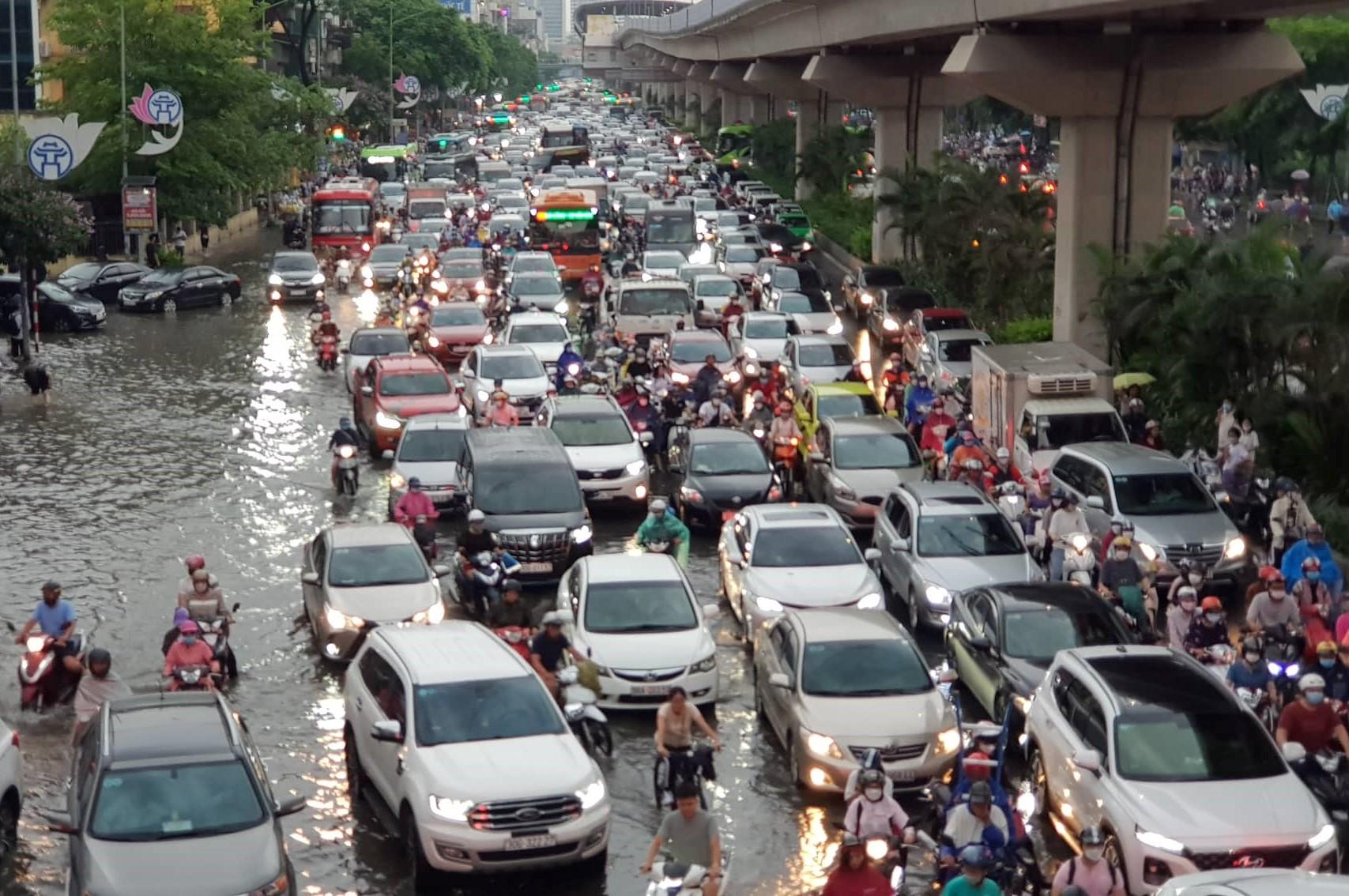 Do ảnh hưởng của mưa lớn, lúc 17h15, đường Trần Duy Hưng hướng đi Nguyễn Chánh xảy ra ùn tắc nghiêm trọng. Hàng nghìn xe nối đuôi nhau kéo dài hàng trăm mét. Lực lượng cảnh sát giao thông phải điều tiết giao thông để giảm ùn tắc trên tuyến này.