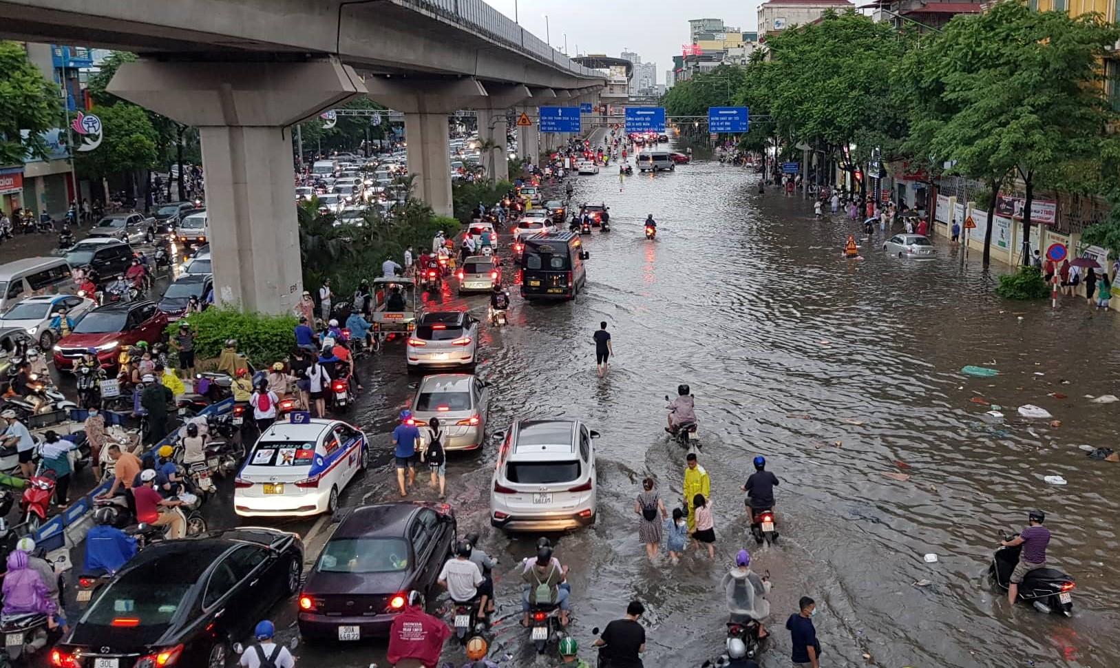 30/05/2022 03:28Phố Hà Nội thành sông, nghìn phương tiện chôn chân nhìn nước rút