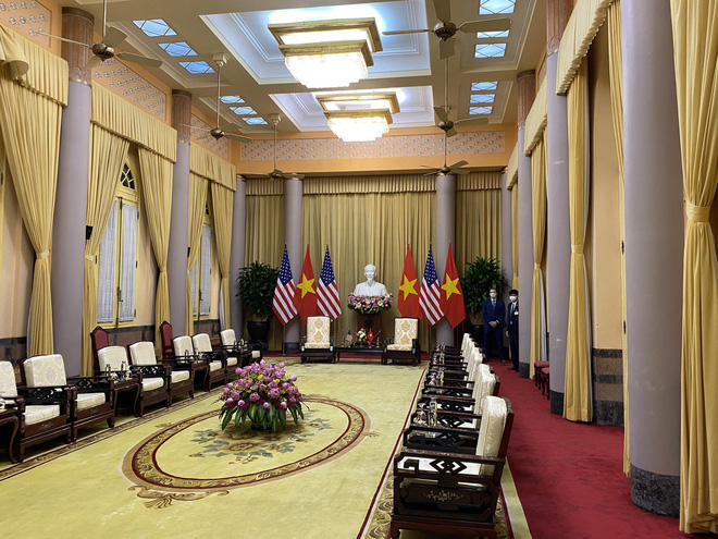 Phó tổng thống Mỹ Kamala Harris đã đến Phủ chủ tịch để bắt đầu các hoạt động trong chuyến thăm Việt Nam.