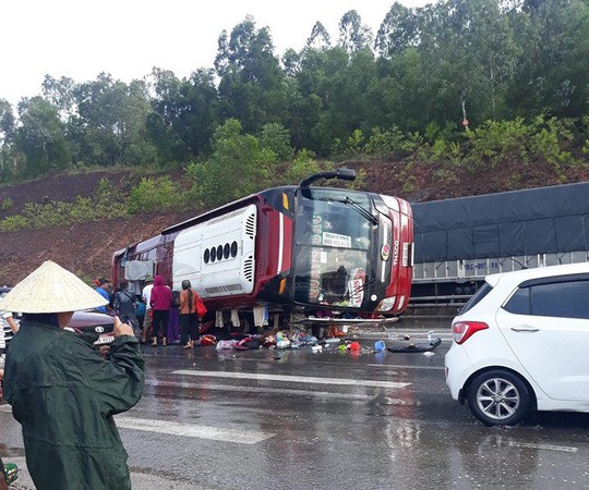 Tại hiện trường, xe khách bị hư hỏng nặng nằm giữa Quốc lộ 1, đồ đạc vương vãi khắp nơi. Theo thông tin ban đầu, đã có 4 người đi trên xe khách bị thương được vận chuyển vào Bệnh viện Đa khoa 115 cấp cứu.