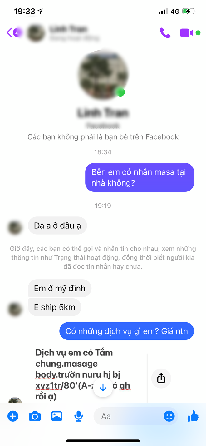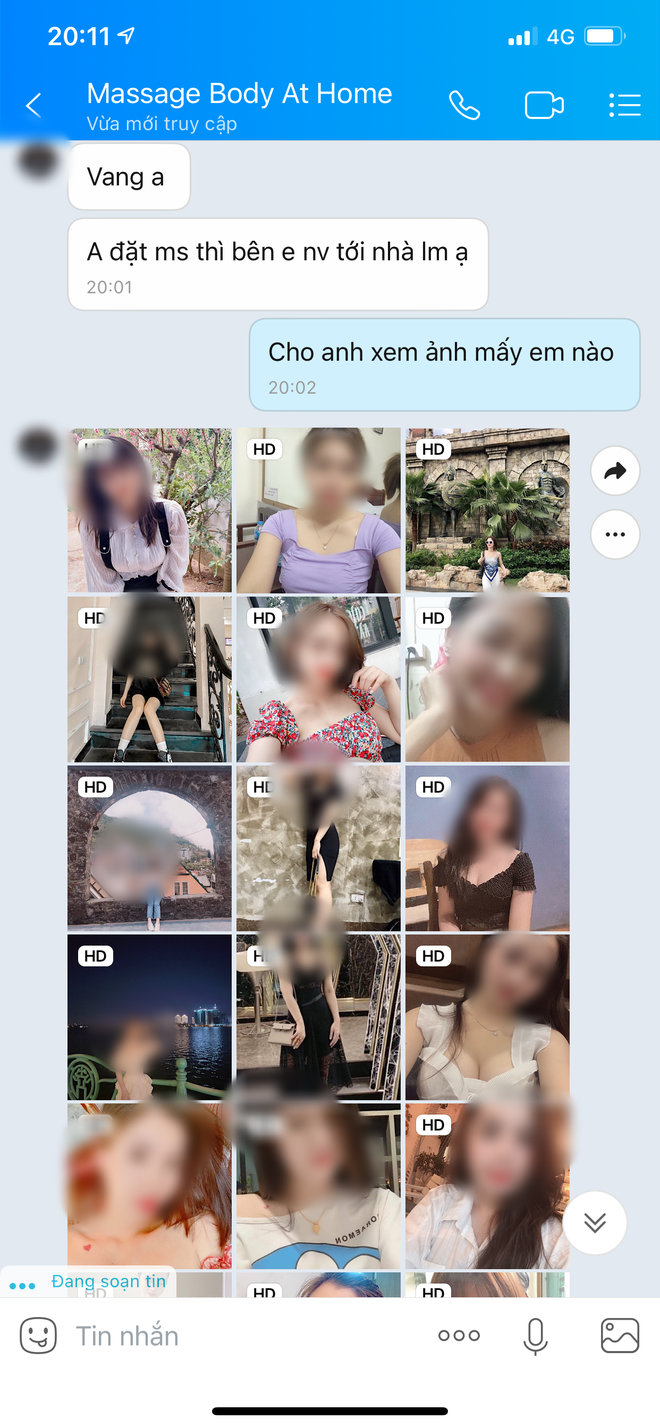 Dạo một vòng trong các hội nhóm có thể thấy nhiều tài khoản đăng bài quảng cáo dịch vụ massage tận nhà với nhiều dịch vụ hấp dẫn từ A-Z, phục vụ 24/24 theo yêu cầu...