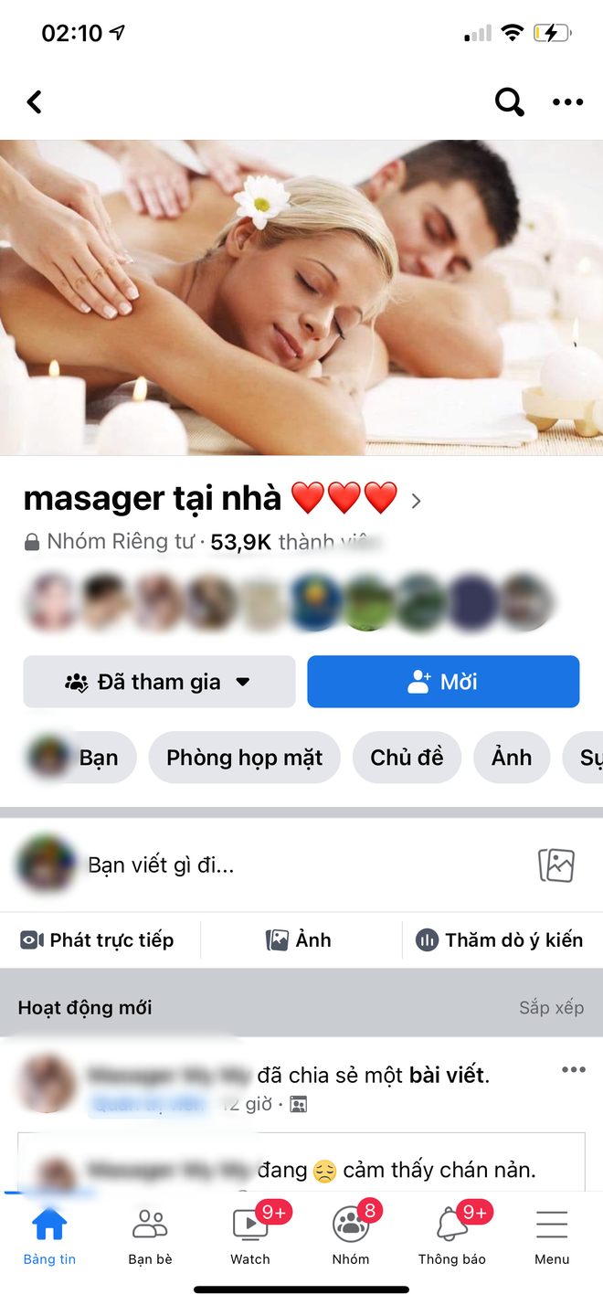 Chỉ cần gõ từ khóa tìm kiếm trên Facebook, chúng ta có thể thấy rất nhiều hội nhóm "Massage thư giãn tại nhà" với hàng chục nghìn thành viên, thậm chí có nhóm lên tới 50.000 thành viên.
