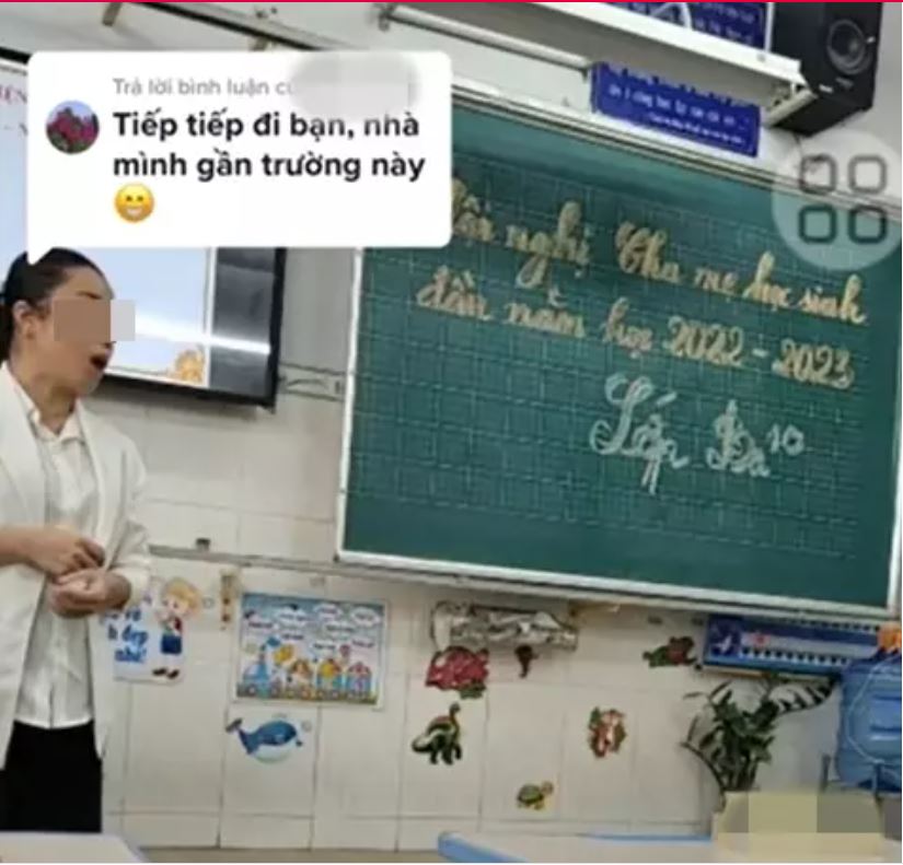 Theo VTCNews, phụ huynh phát biểu trong clip là bà Phạm Thị Kim Tuyến - nguyên phó ban đại diện cha mẹ học sinh lớp 2/7 (nay là lớp 3/10).
