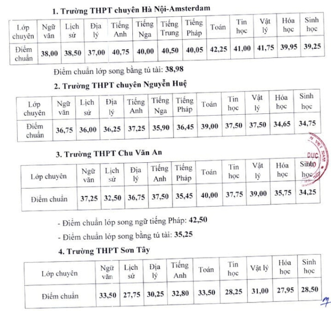 Đến trưa ngày 1/7, Sở Giáo dục và Đào tạo Hà Nội đã chốt và công bố điểm chuẩn lớp 10 chuyên, cao nhất 42,25 điểm.