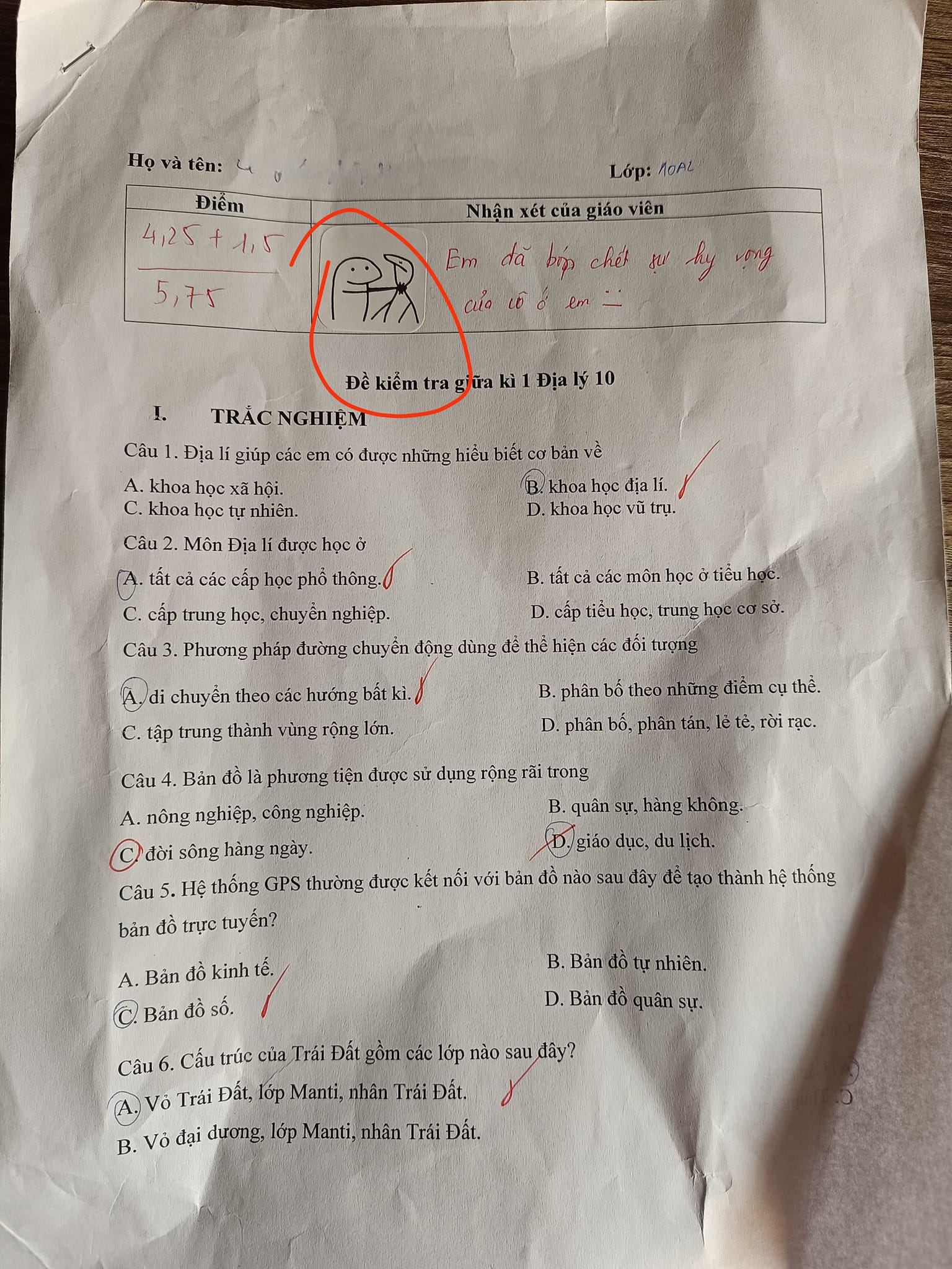 Theo đó, học sinh này được điểm kiểm tra 5.75. Cô giáo nhận xét: "Em đã bóp chết sự hy vọng của cô ở em" cùng hình vẽ minh hoạ hài hước. Theo người này, đây là cách viết lời phê không nên có ở môi trường giáo dục.