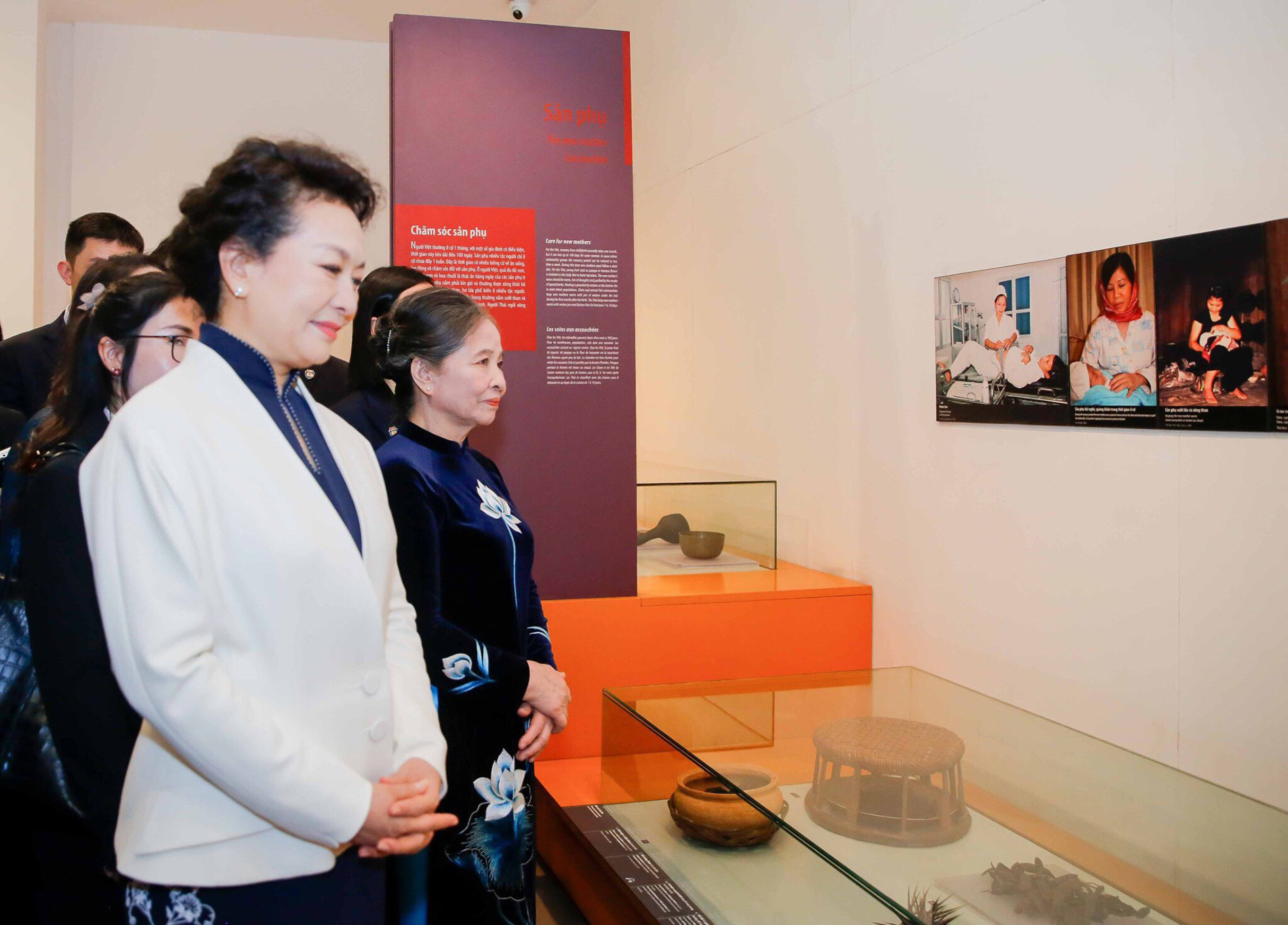Tại Bảo tàng Phụ nữ Việt Nam, phu nhân Tổng Bí thư Nguyễn Phú Trọng và phu nhân Tổng Bí thư, Chủ tịch nước Trung Quốc Tập Cận Bình tham quan phòng trưng bày và nghe giới thiệu về các tài liệu, hiện vật tại bảo tàng nhằm tôn vinh nét đẹp của người phụ nữ Việt Nam, đồng thời phản ánh sự phát triển và thay đổi về vai trò, vị thế và đời sống của người phụ nữ trong xã hội qua thời gian.