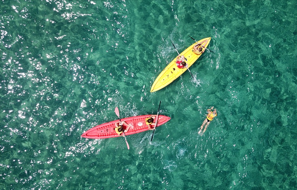 Anh Bùi Quốc Việt, khách du lịch đến từ Cần Thơ chia sẻ: "Thời điểm đầu năm mới là rất thích hợp đi biển đảo vì thời tiết mát mẻ, biển êm. Gia đình chúng tôi đã trải nghiệm các hoạt động khám phá như lặn biển, ngắm san hô, câu cá... Tôi thấy các khu du lịch của Phú Quốc hiện tại đều rất đông nhưng mọi người đều ý thức thực hiện “5K” phòng, chống dịch COVID-19".