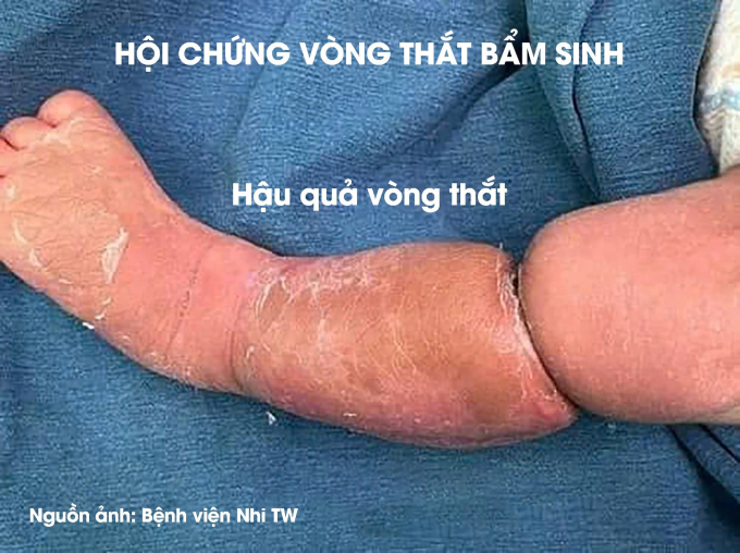 Bác sĩ nội trú Sùng Đức Long - Phó Trưởng khoa Ngoại tổng hợp 2, người trực tiếp phẫu thuật cho bé cho biết: Hội chứng vòng thắt bẩm sinh là một căn bệnh ít gặp ở trẻ tuy nhiên nguy cơ để lại di tật rất cao. Hội chứng này biểu hiện qua các ngấn sâu trên các chi của trẻ mà rất nhiều phụ huynh lầm tưởng đó chỉ là các ngấn sinh ra do con mình bụ bẫm.
