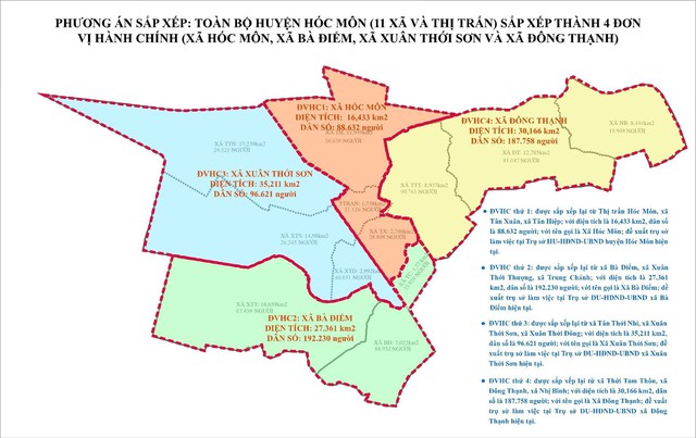 Huyện Hóc Môn hiện có 11 xã, thị trấn, sắp xếp thành 4 xã mới.