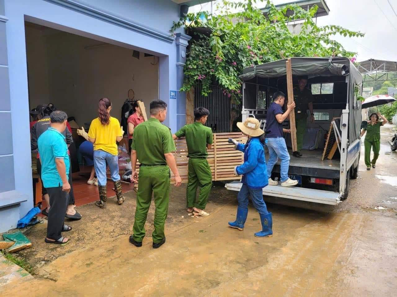Công an phường Him Lam đã huy động 100% cán bộ xuống địa bàn, phối hợp với chính quyền địa phương hỗ trợ người dân chuyển tài sản đến nơi ở an toàn.