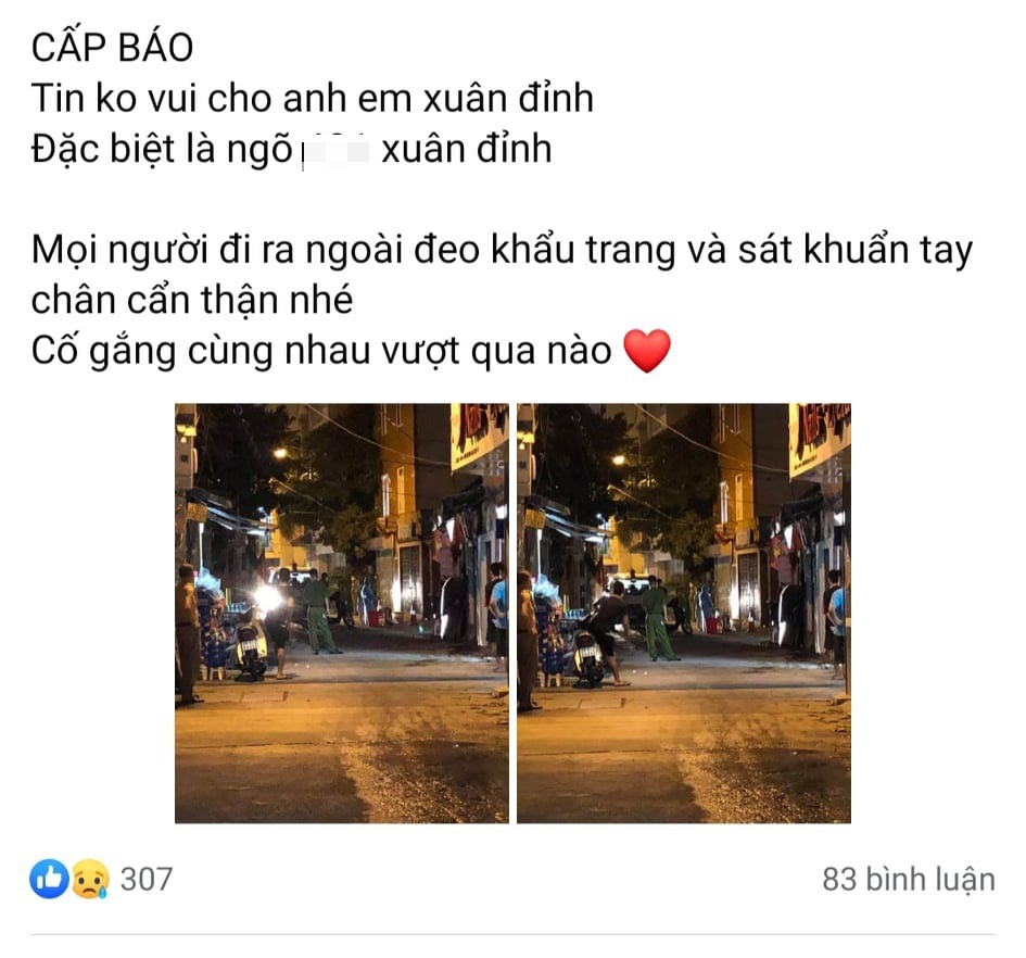 Tối ngày 26/7, trên mạng xã hội Facebook xuất hiện một bài đăng kèm theo hình ảnh "Cấp báo, tin không vui cho anh em Xuân Đỉnh, đặc biệt là ngõ xxx Xuân Đỉnh. Mọi người ra ngoài đeo khẩu trang và sát khuẩn tay chân cẩn thận nhé. Cố gắng cùng nhau vượt qua nào".