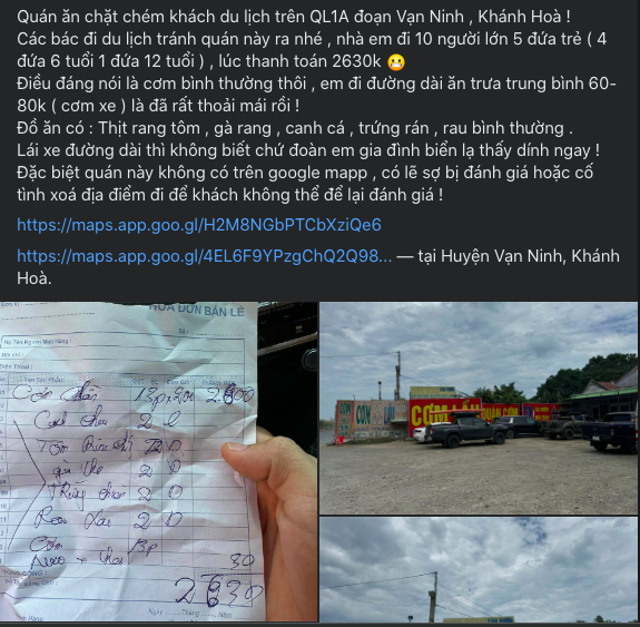 Xuất hiện trên mạng xã hội từ ngày 23/7, bài tố quán cơm ở xã Vạn Thắng, huyện Vạn Ninh (Khánh Hoà) "chặt chém" khách cho tới nay vẫn đang nhận được sự quan tâm, theo dõi của số đông.